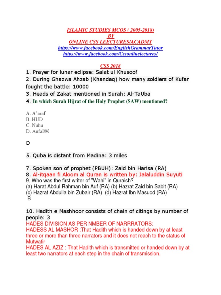 Islamic Studies Mcqs Upto 2005 2018 Medina Muhammad Revolver E Pistola Differenza