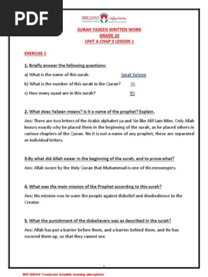 Surah Yaseen Written Work Grade 10 Unit A Chap 3 Lesson 1 Exercise 1 Prophets And Messengers In Islam Surah Mr Tambourine Man Chords